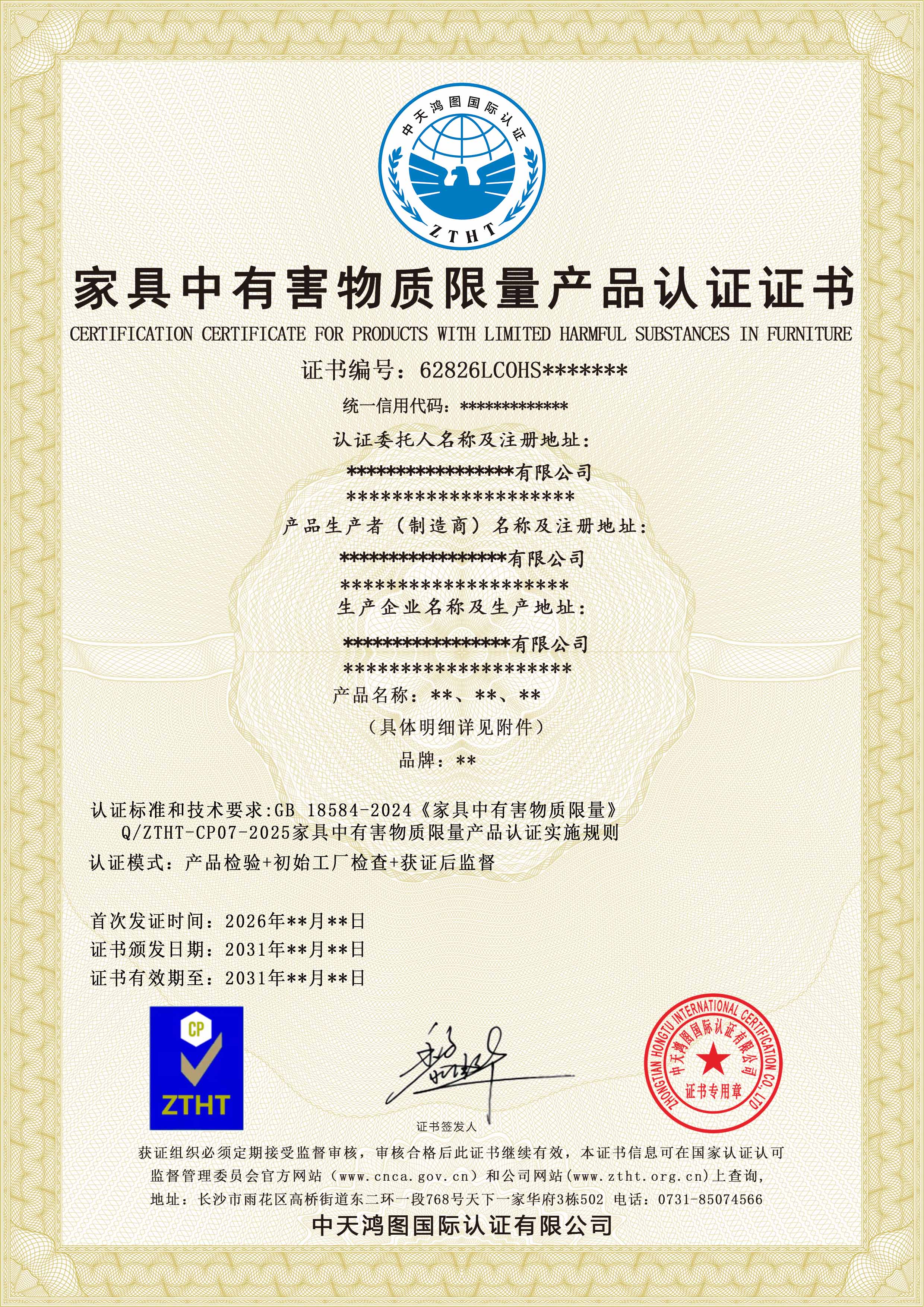 家具中有害物质限量产品认证实施规则