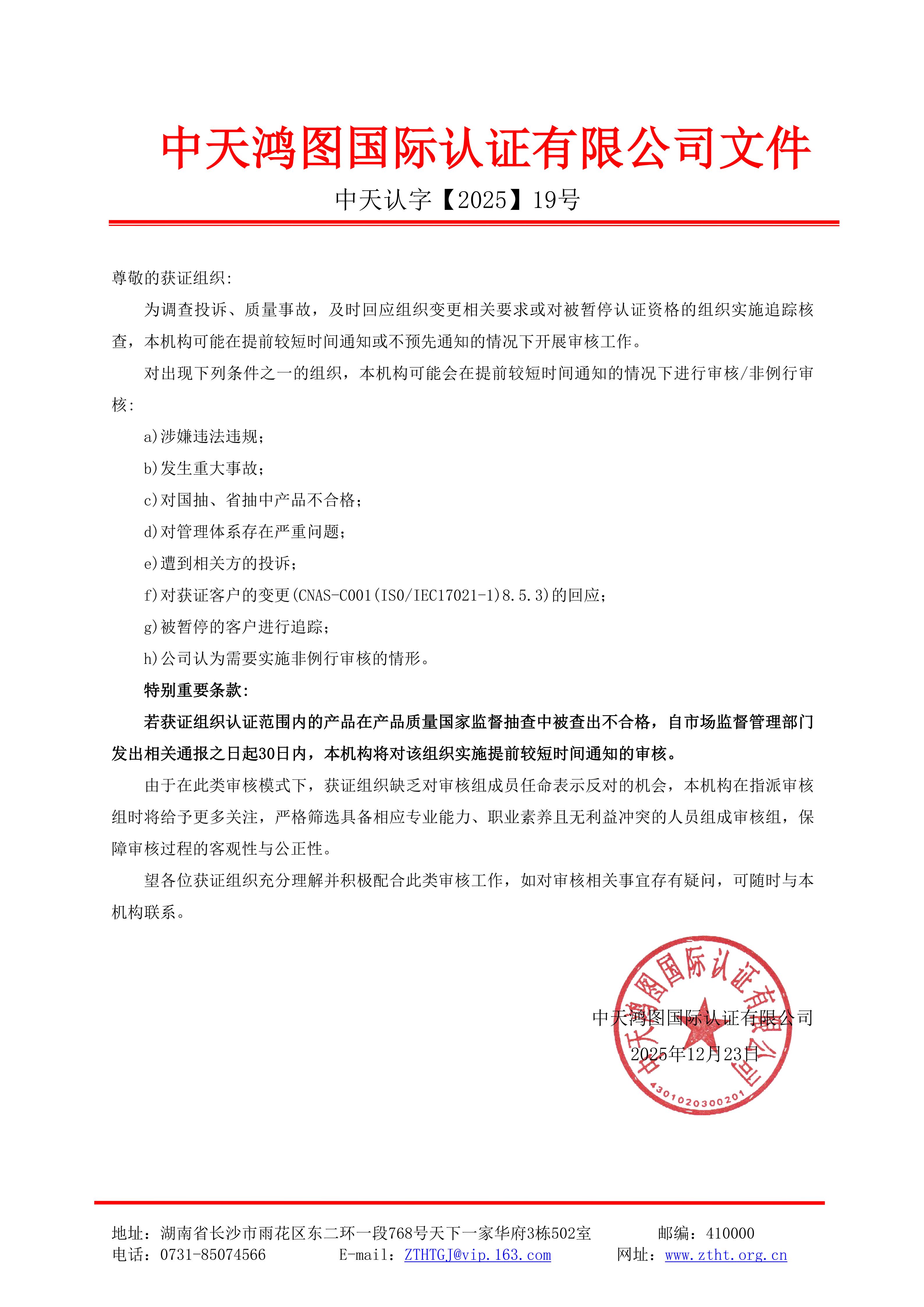 下一篇:关于落实国家认监委进一步规范管理体系认证活动的致客户书