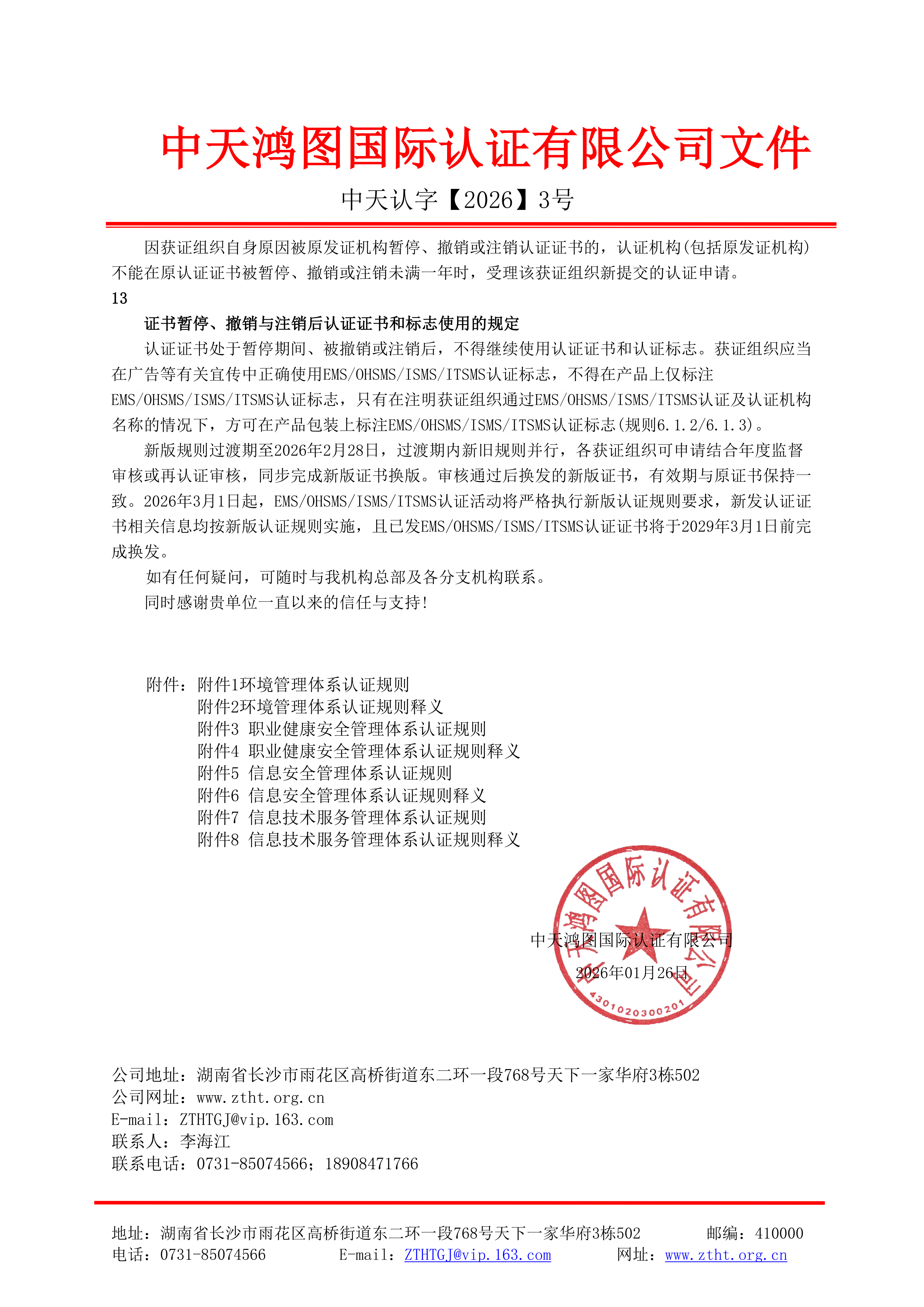 电话:0731-85074566 地址:湖南省长沙市雨花区高桥街道天下一家华府三栋502室 网址:http://www.ztht.org.cn 邮箱:ZTHTGJ@vip.163.com